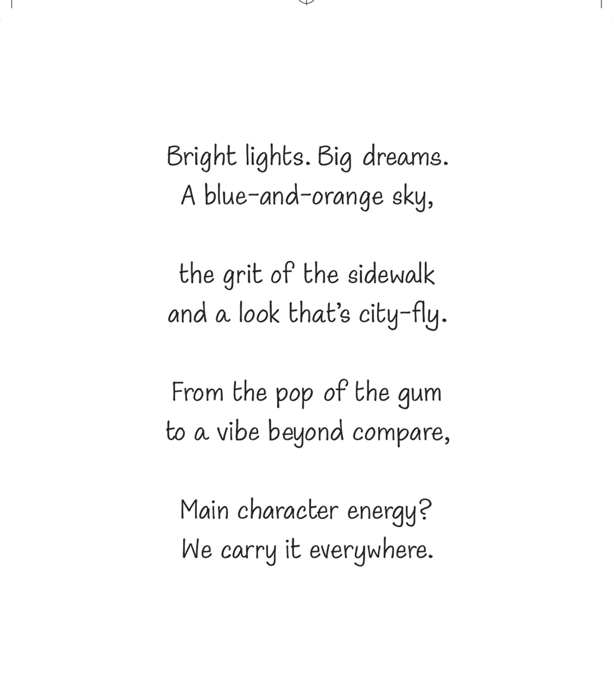 “So NYC” celebrates bold New York City energy with blue-and-orange skies, sidewalk grit, and undeniable main character confidence.